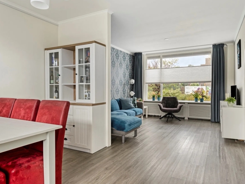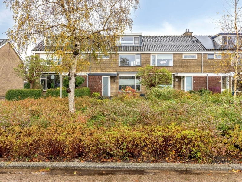 Ruime entree met meterkast ( 7 groepen en 5 aardlekautomaat) en vaste (garderobe) kast. Via de tussendeur komt u in de hal met de trapopgang naar de eerste verdieping, het toilet is betegeld en heeft een hangtoilet. On de trap naar boven bevind zich de voorraadkast. Via de tussendeur is er toegang tot de ruime lichte doorzon woonkamer. De ruime keuken is gelegen aan de achterzijde van de woning en middels een loopdeur is er toegang tot de fraai aangelegde achtertuin met achterom. Deze is gelegen op het noordoosten. De open keuken is voorzien van alle benodigde inbouwapparatuur; vaatwasser, koelkast, oven, magnetron, 4 pits gasfornuis, RVS afzuigkap.